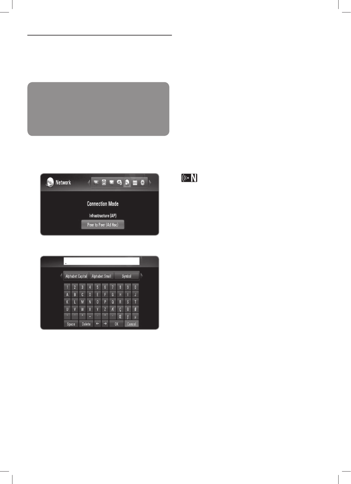 2 Use v/V to select the [Peer to Peer (Ad Hoc)], and