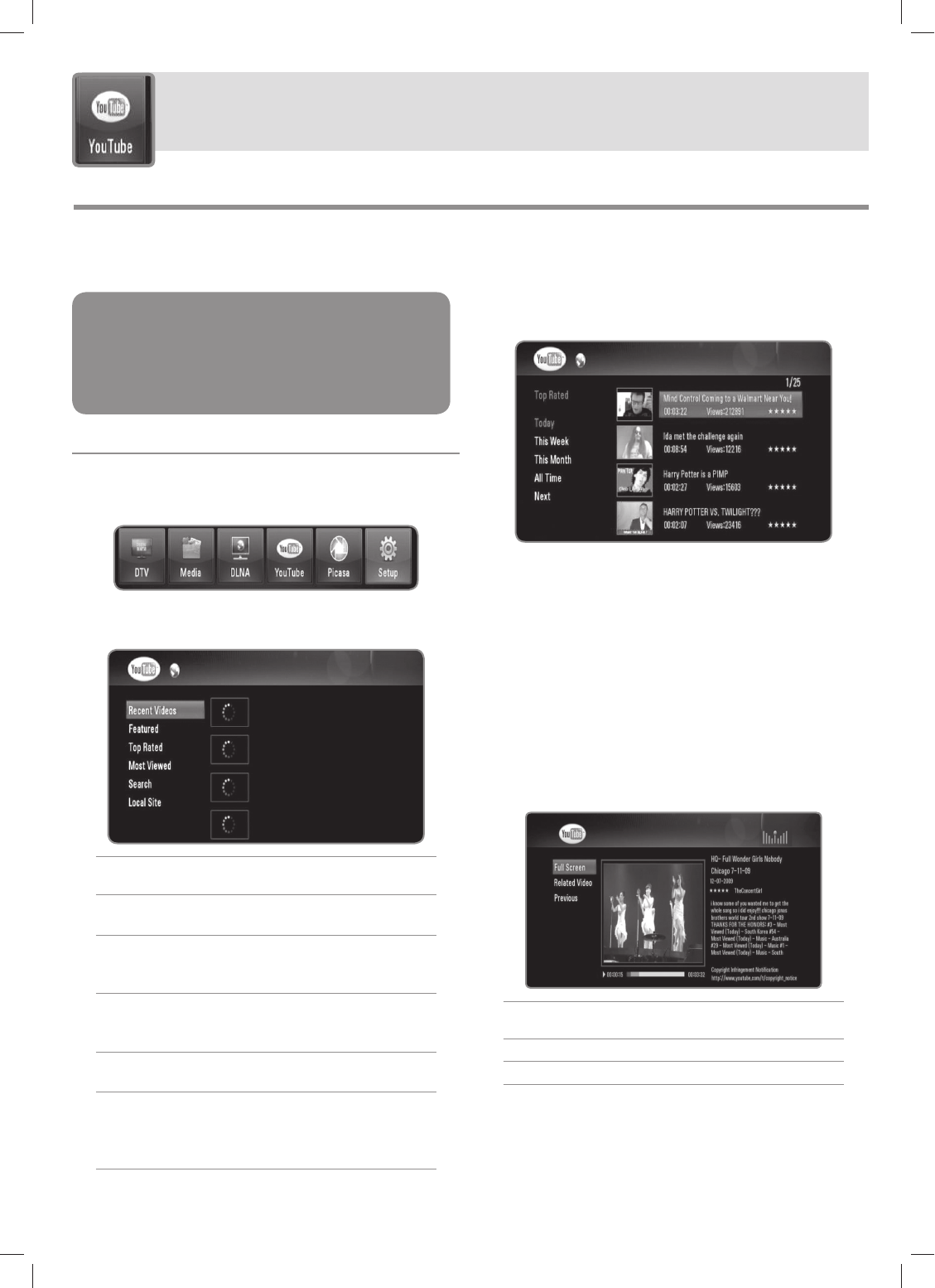 Operating YouTube™ feature