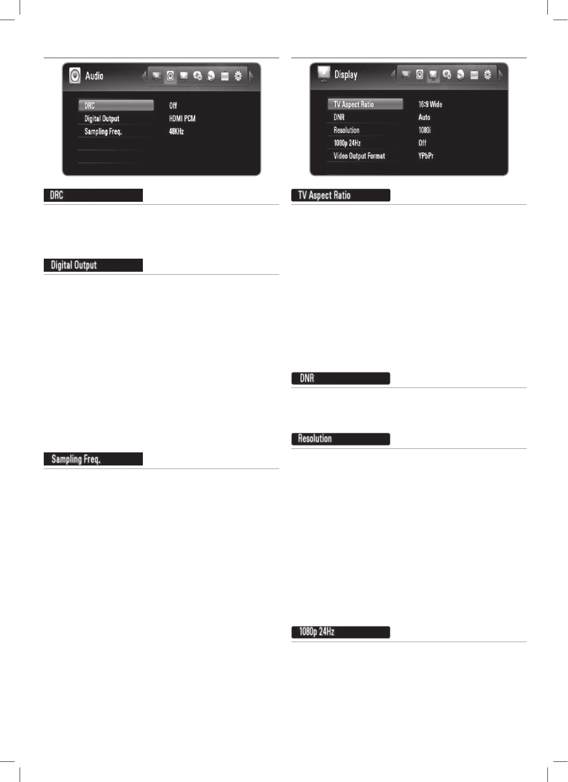 [HDMI Bitstream]: Select if you connect this recorder’s